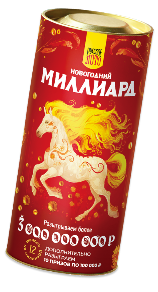ПодробнееКупить билеты на «Новогодний миллиард» от «Русского лото» можно в наборе — новогодний тубус (12 билетов), подарочный конверт (6 билетов) или «Золотая коробочка» (21 билет). Среди покупателей наборов проводятся акции по розыгрышу призов. Праздничные наборы доступны только в фирменных магазинах «Столото»